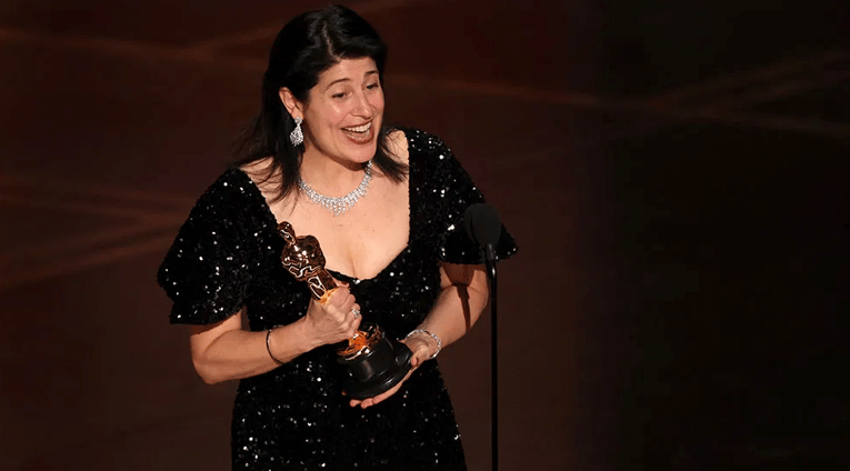 Cassandra Kulukundis holds her Oscar for best casting for one 'One Battle After Another' during the 2026 Academy Awards. PATRICK T. FALLON / AFP VIA GETTY IMAGES