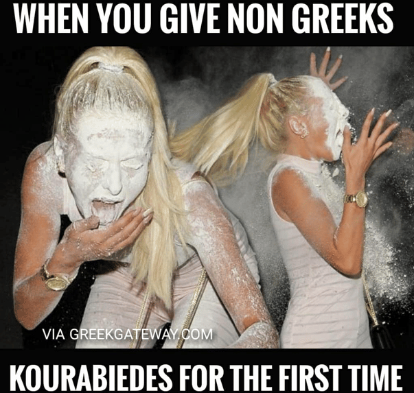Buttery, crumbly, almond-studded cookies buried under a snowstorm of powdered sugar that will coat your clothes, furniture, and all nearby surfaces. Kourabiedes are the other half of Greece's Christmas cookie duo (melomakarona's refined sibling), shaped into crescents or balls, flavored with vanilla, brandy or rosewater, and engineered to disintegrate the moment they touch your lips. Eating one requires strategic planning and acceptance that powdered sugar will end up everywhere.
